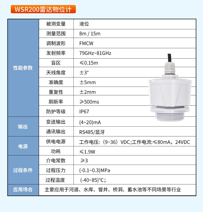 聯測WSR200雷達液位計產品特點:抗干擾、小盲區、支持藍牙輸出