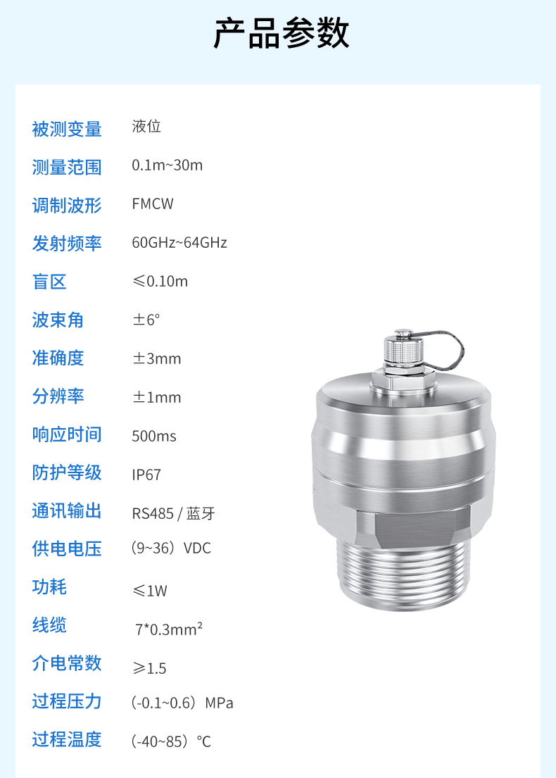 您的位置: 首頁 > 水位雷達液位計 → 聯測儀表WSR300雷達液位計60~64GHz藍牙輸出