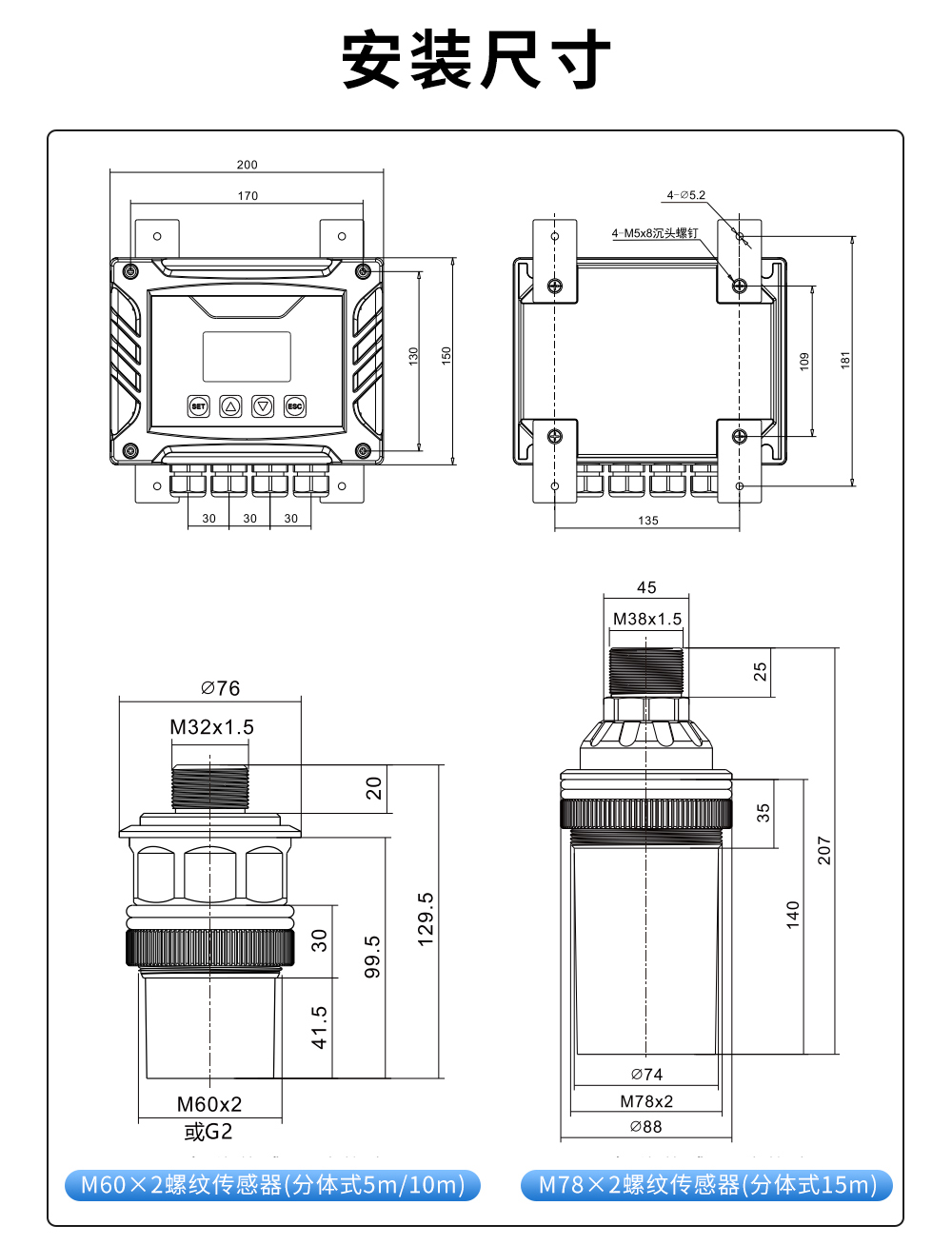 您的位置: 首頁 > 超聲波液位計 → 聯測儀表SIN-ULS-B精度0.3%/0.5%分體式超聲波液位計