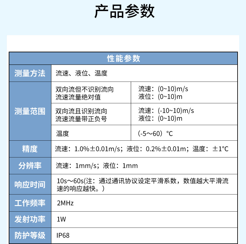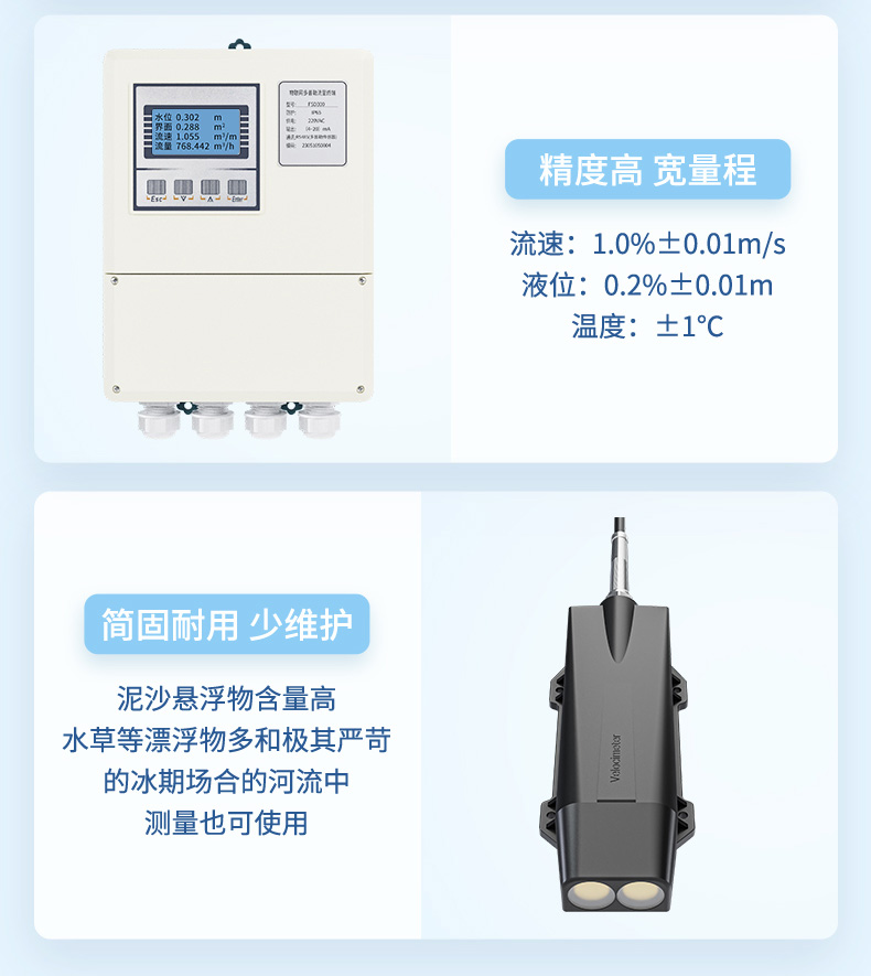 聯測儀表SIN-FSD300多普勒超聲波流量計是在自然水域或者渠道、管道中測量水的流速、流量的儀表,利用超聲波技術探測流速,測量點在機體前方,不破壞流場;測量精度高,測流線性,可測瞬時流速,也可測平均流速;無轉動部件,不懼泥沙堵塞和水草纏繞,探頭堅固耐用,不存在泥沙堵塞或水草、雜物纏繞等問題,最適用于泥沙懸浮物含量高,水草等漂浮物多和極其嚴苛的冰期場合的河流中測量。