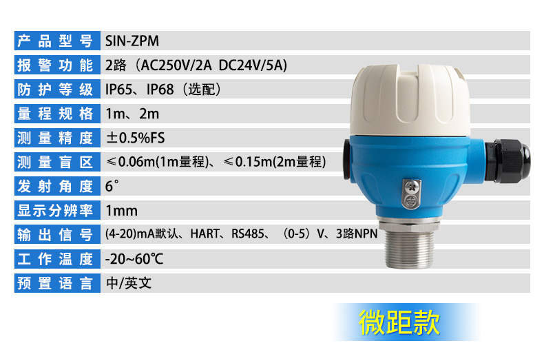 可定制小盲區(qū):盲區(qū)可做0.4m(5m)、0.5m(10m)、0.6m(15m)