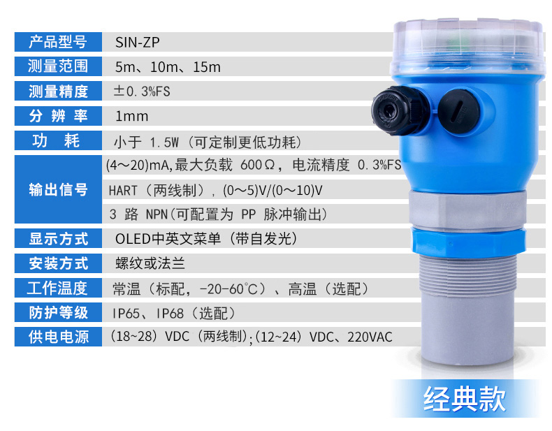 聯(lián)測(cè)儀表SIN-ZP超聲波液位/物位計(jì)產(chǎn)品特點(diǎn):±0.3%高精度、五檔濾波,穩(wěn)定測(cè)量